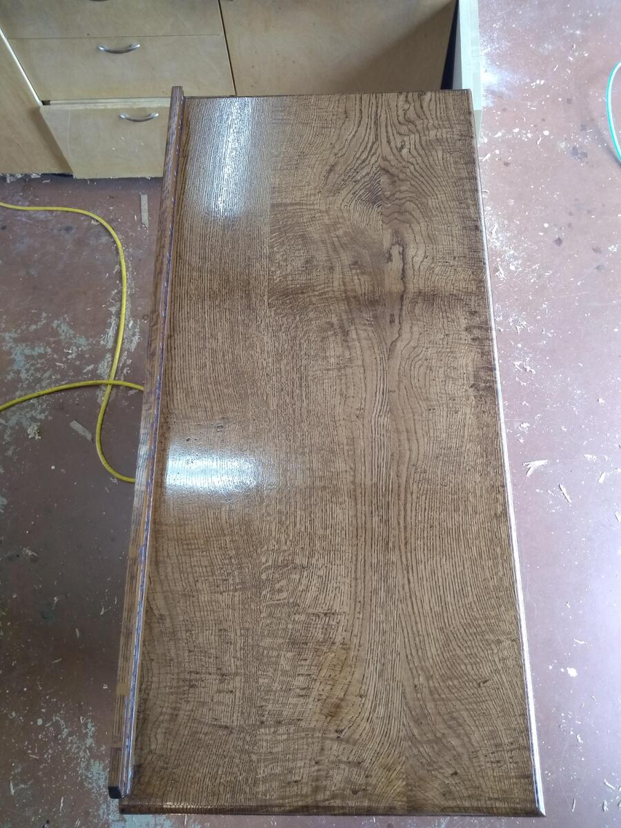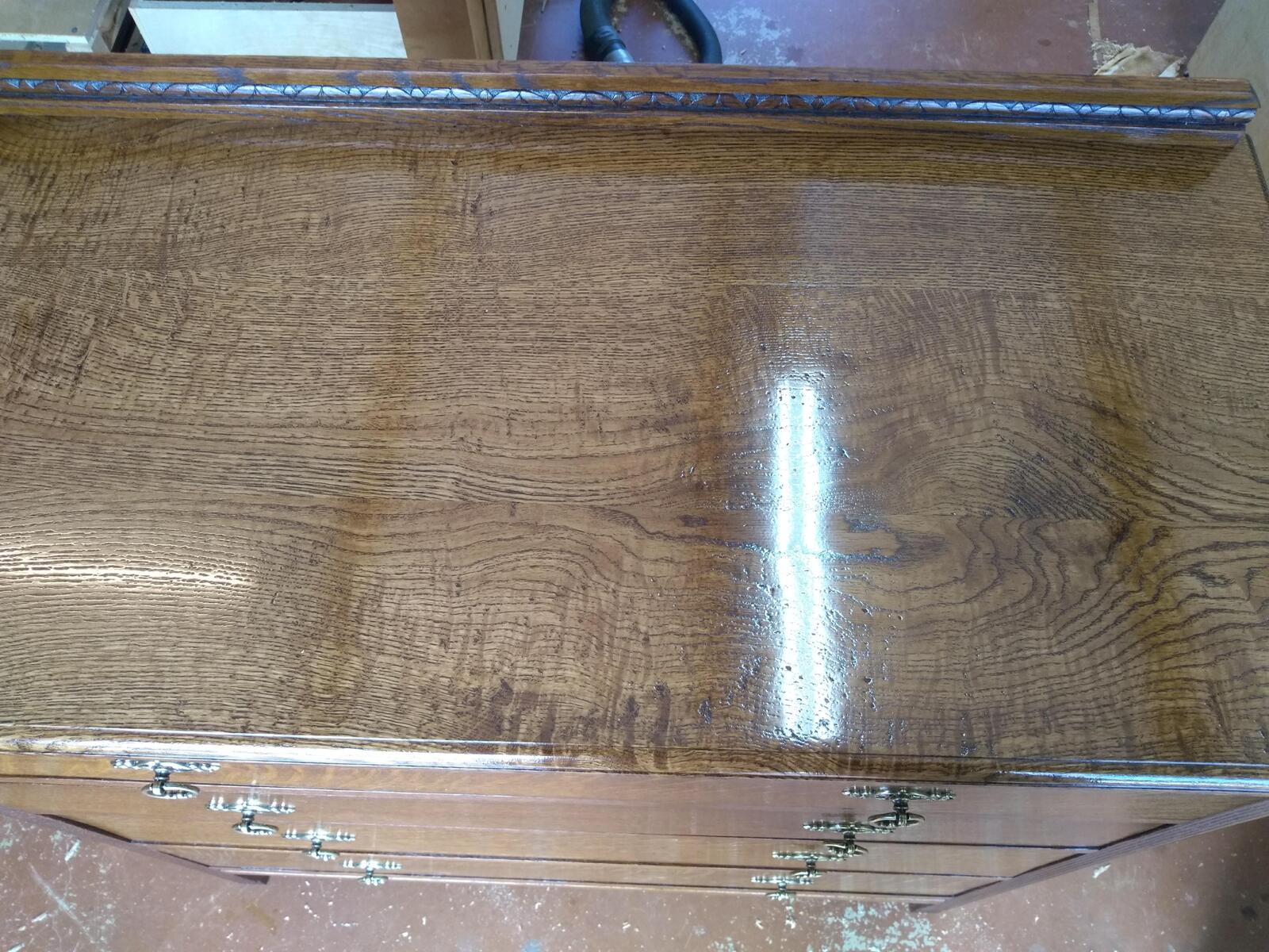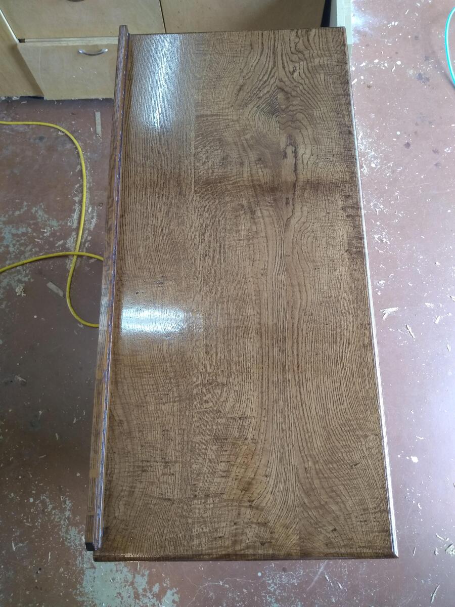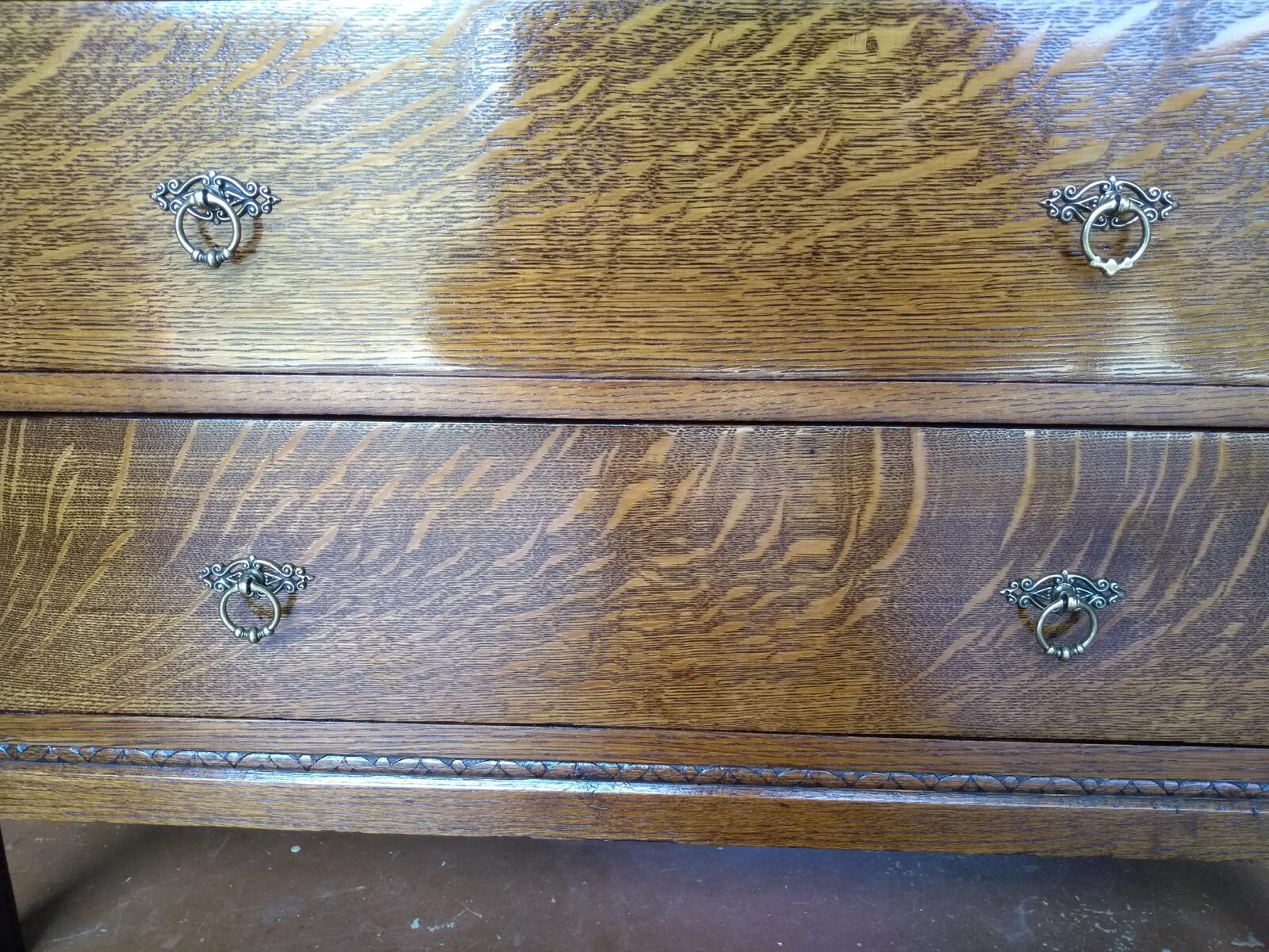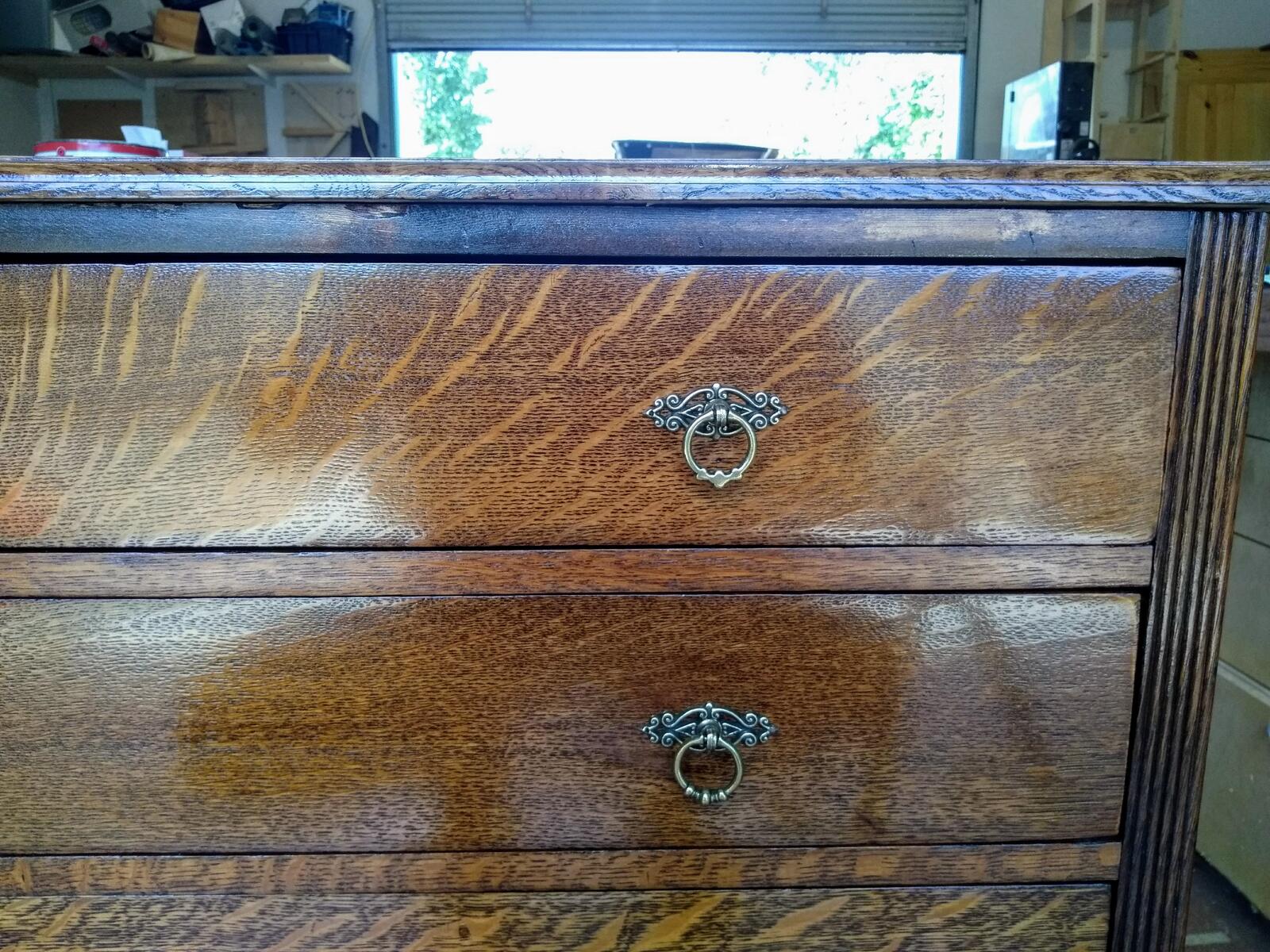 I was asked to restore a dresser for a customer. The dresser was painted and the top had a venear that was pealing off. I found some nice 4/4 oak and built a new top for it. I also stripped all the varnish and paint off it, and found some stunning rays and flecks. Sanded and refinished the wood and put new hardware on.